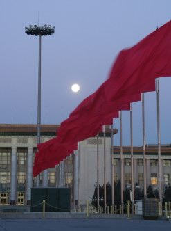 I thank you. Anyway, we managed to haul our arses out of bed at 6 this morning and got to the flag-raising ceremony on time, which was sort of flaggy, and raisingy. Not the best spectacle in the world, and most of the time was spent with me trying to get a competition-winning photo of the huge moon that hung over the Great Hall of the People, one of the Stalinist buildings that dominate the sides of the square. I think I have one, but will have to wait until I've transferred them to the computer.