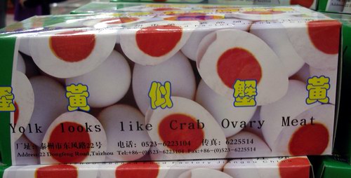 I just thought I would make you all jealous with the kind of foodstuffs we currently have access to. Check out the selling point of these salted duck eggs.