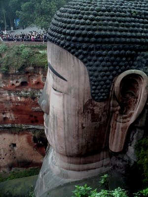 At the bottom, staring up at his lovingly carved triple chin and cartoonish face, my perception of the scale of the dude was finally complete. Big. Woe betide you if you try to tell me about any other big Buddhas. They're not big. You want big, you should see the one at Leshan.