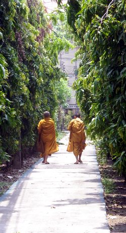 Just to price things out anyway, we looked into the price of a flight. The travel agent we asked at made the mistake of telling us which airline she was quoting - Air Asia - and I remembered that this is the new low-cost airline - the Ryanair of Asia. So we high tailed it to an internet café, and discovered that the cost of a flight from Bangkok to Penang direct, at 1,200 baht (€24) is actually cheaper than the cost of the coach/bomb/minibus/ferry option, at 1,300 baht (€26). And in fact only half the price quoted by the agent. And they do online bookings. So we booked, and we leave for Penang by plane tomorrow.