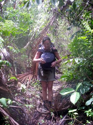 The next day we donned our packs, and renegotiated the jungle trail. Not too arduous a journey, though quite energetic, but with 20 kilos on my back, I began to sweat like Niagara. When we arrived at the new resort, I dripped all over the reception desk, and the very kind people behind the desk fussed around and got me a towel, and didn't seem as disgusted as I would have been.