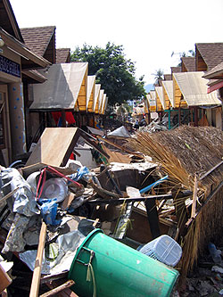 Before and after: fish street in Tonsai, the side least affected, after volunteer efforts. |