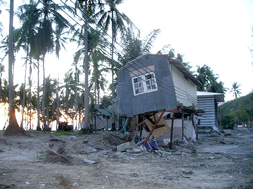 I don't think I've been on the verge of tears so often in my life as I have here. There is such sadness and such hope, and seeing the stoical suffering of the people, and the overwhelming kindness of strangers, is extraordinarily moving. Hi Phi Phi has a video, not released to the media, of the entire disaster unfolding, taken by one of the dive shop residents from his roof, that the organisation shows to new visitors. Set to the haunting song Blessed to be a Witness by Ben Harper, it is so intense that many people who view it are traumatised for hours afterwards. When we viewed it, one of the girls watching it had to be led out in a faint. One particular shot really hit me - a long line of palm trees in the distance being felled one by one, like a scene of approaching menace from a 1950s B-movie.