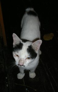 Outside our bungalow we have a coterie of cats, whom we feed occasionally. The first one we met was this very timid, very forlorn looking cat with only one ear. The vets had amputated it due to a malignant tumour, and as a result she is bullied by the other ones. She is called Emily One-Ear, and though she's the ugliest thing I've ever seen, she's very cute. Her defender, and possibly brother, is a brutish looking tom called Scar Tissue, who has been in the wars, but is the most affectionate cat I've ever met. He and Emily have no teeth apart from their incisors, which are so long they look like tusks when they open their mouths.