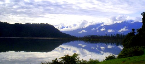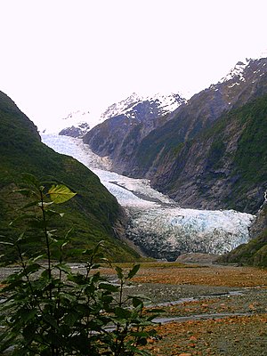 We finally arrived in the little settlement of Franz Josef, below the famous glacier, which together with its brother Fox Glacier about 25 kilometres south, is one of New Zealand's only two active glaciers. Thanks to the skiing, my back by this time was absolutely agonising, and driving for hours on end wasn't helping it. We therefore booked into a motel with a bath so I could lie in hot water, the only thing that seemed to relieve the pain. You pay for what you get, so we coughed up double what we normally pay for accommodation, and in return got a chalet with satellite TV, a DVD player, a kitchen and a spa bath. Rather lovely, and we saved at least $10 by cooking our own food, by which false economy I attempted to justify the expense.