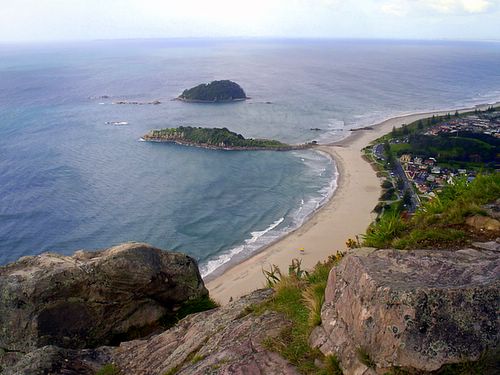 After a lovely dinner on board the boat, our cousins took us out to the local Irish bar, and we had several drinks too many and a good laugh. I cured my hangover the next day, when the rain let up for a few minutes, by climbing Mount Manganui, a 232-metre rocky hill that I take to be the core of a dead volcano (though as my aunt said, there's no such thing as dead, just dormant). The views from the top were spectacular, but as I began to descend, rainclouds gathered again on the horizon.